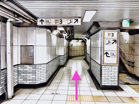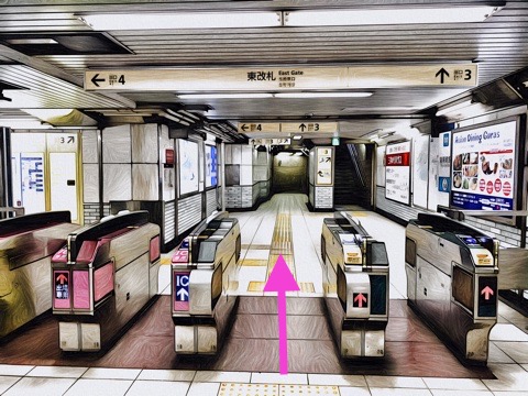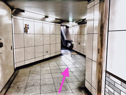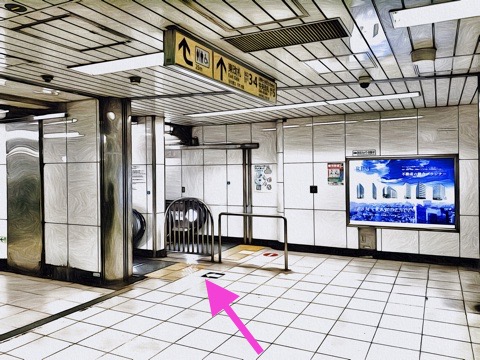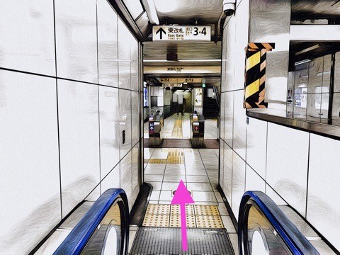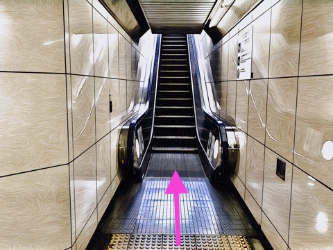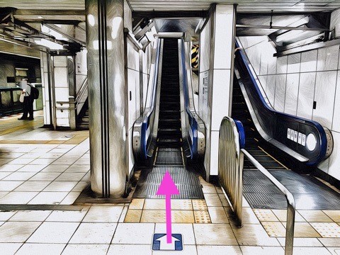 2号車1番扉(先頭から9両目)付近のエスカレーターへ
