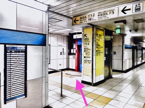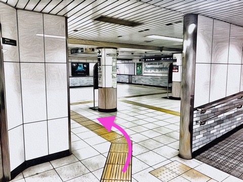 8号車4番扉(先頭から3両目)付近のエレベーターへ