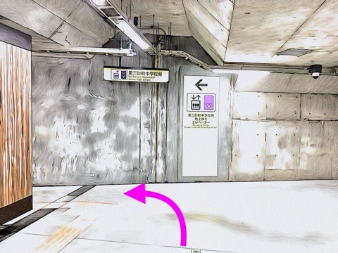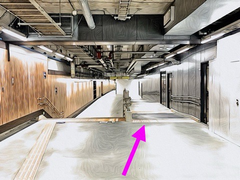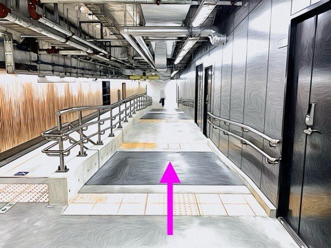 5号車3番扉(先頭から5両目)からエレベーターへ