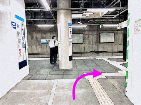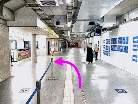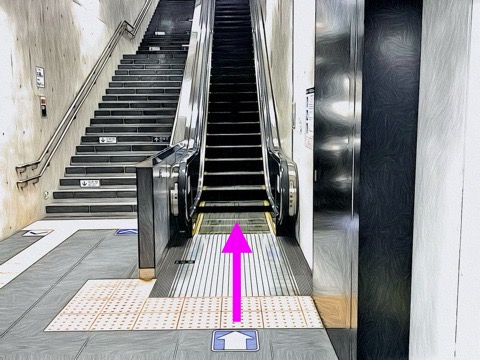 2号車4番扉(先頭から2両目)からエスカレーターへ