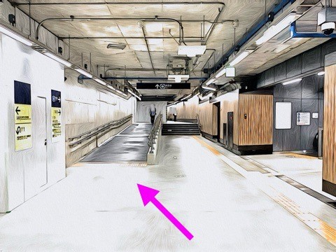 2番線が中野方面行きホーム(6号車2番扉/先頭から5両目)