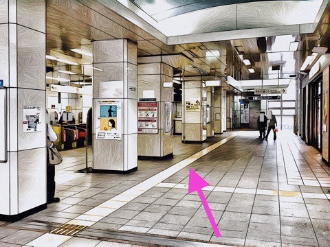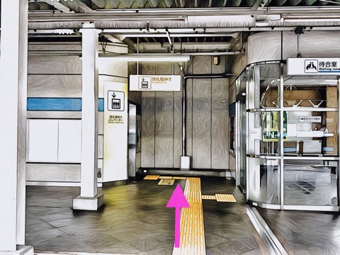 5号車4番扉(先頭から5両目)付近のエレベーターへ