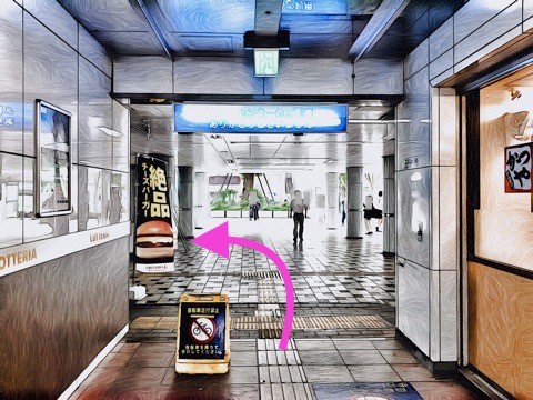 北口からエレベーターへ