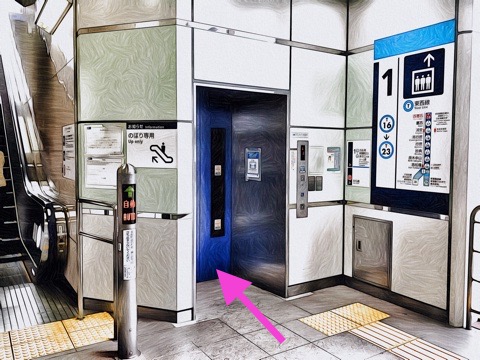 エレベーターで改札階へ