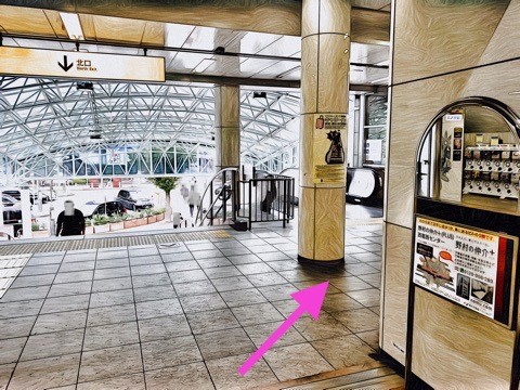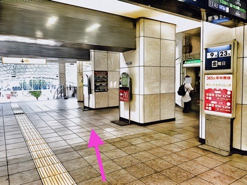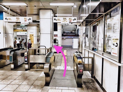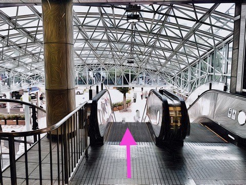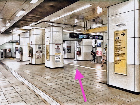 5号車4番扉(先頭から6両目)付近のエレベーターへ
