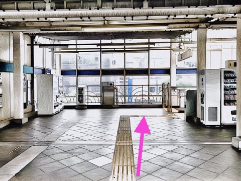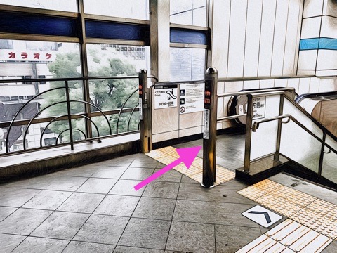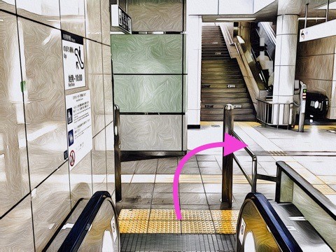 4号車3番扉(先頭から4両目)付近のエスカレーターへ