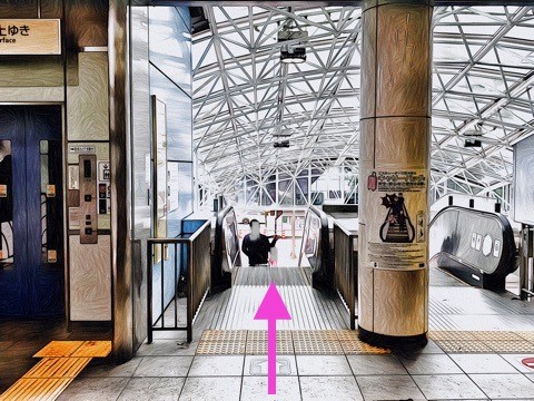5号車4番扉(先頭から6両目)付近のエレベーターへ