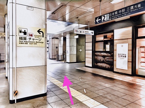 2番線が中野方面行きホーム(7号車1番扉/先頭から4両目)