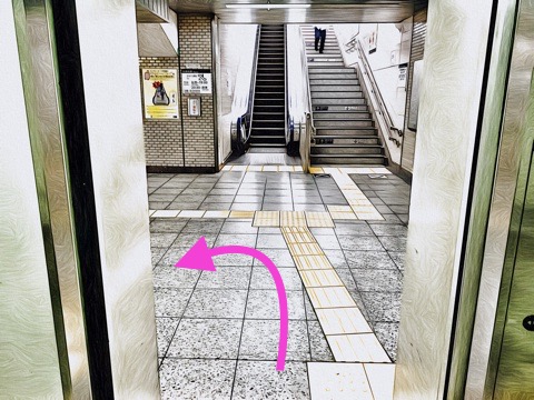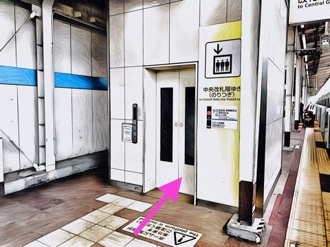 7号車2番扉(先頭から7両目)付近のエレベーターで下の階へ