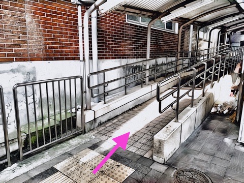 右にあるスロープへ