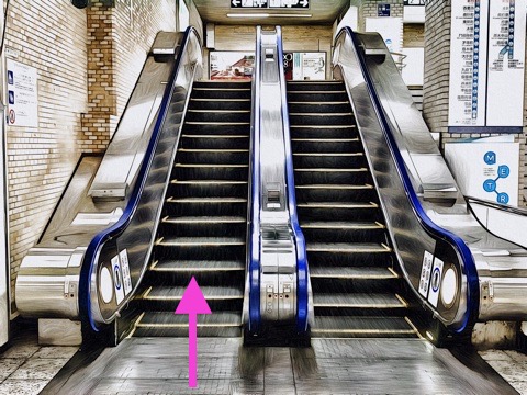 前方のエスカレーターへ