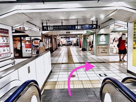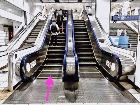 改札を入り右前方にあるエスカレーターへ