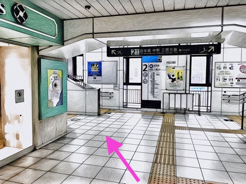 2番線が中野方面行きホーム(4号車3番扉/先頭から7両目)
