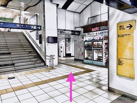 2番線が中野方面行きホーム(5号車4番扉/先頭から6両目)
