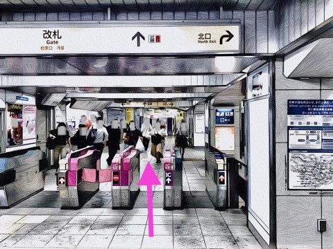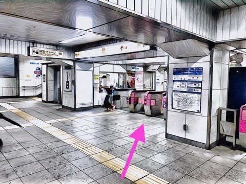 エレベーターを降り右前方の改札へ