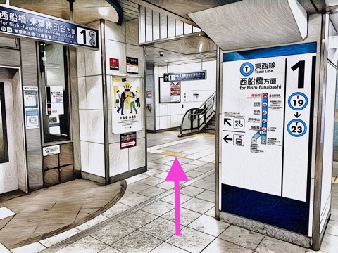西船橋方面行きホーム(5号車3番扉/先頭から5両目)