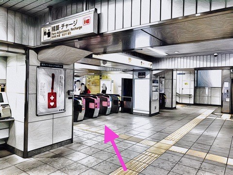 エレベーターを降り左前方の改札へ