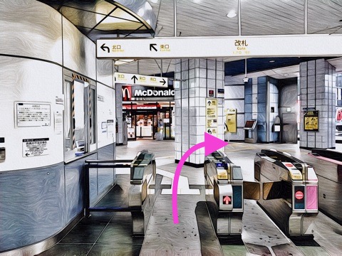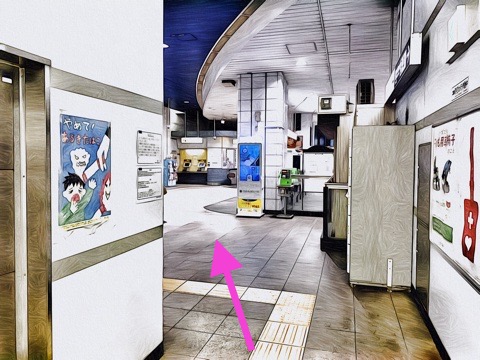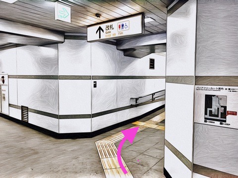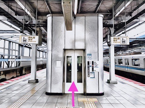 3号車4番扉(先頭から8両目)付近のエレベーターで改札階へ