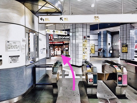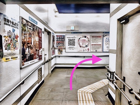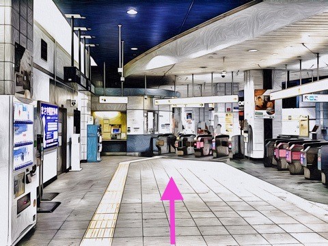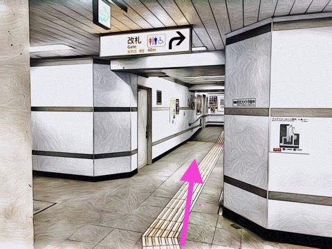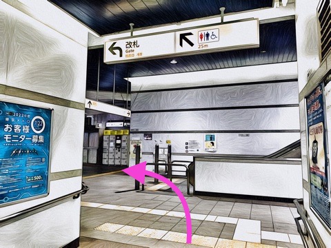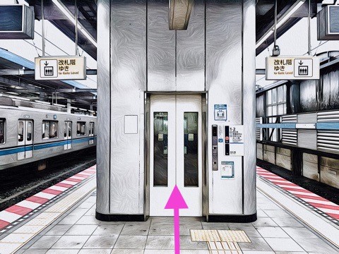 3号車4番扉(先頭から3両目)付近のエレベーターで改札階へ