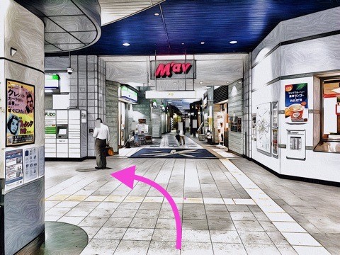 3号車4番扉(先頭から3両目)付近のエレベーターで改札階へ