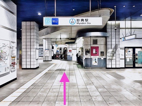 前方の改札へ