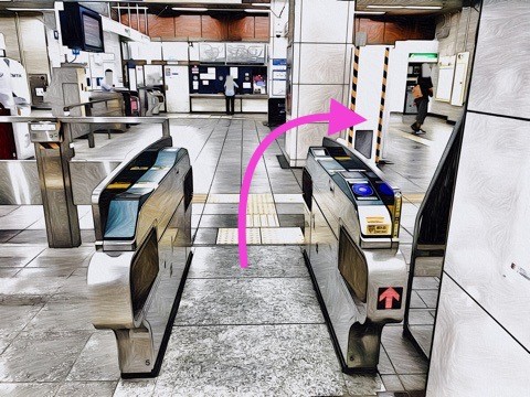 エレベーターを降り右前方の改札へ