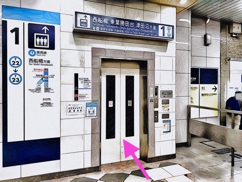 1番線が西船橋方面行きホーム(8号車3番扉/先頭から8両目)