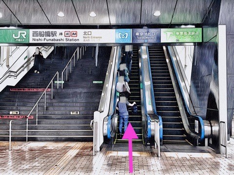 北口のエスカレーターで改札階へ
