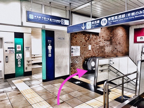 7,8番線ともに中野方面行きホーム(6号車1番扉/先頭から5両目)