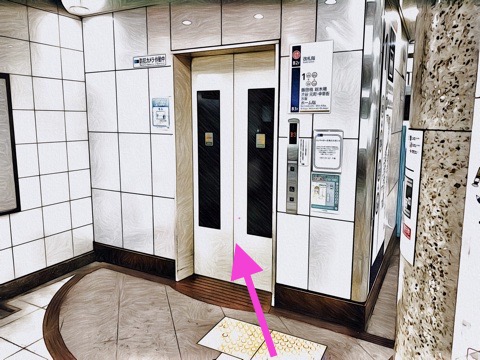エレベーター出入口のエレベーターで改札階へ