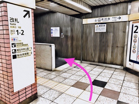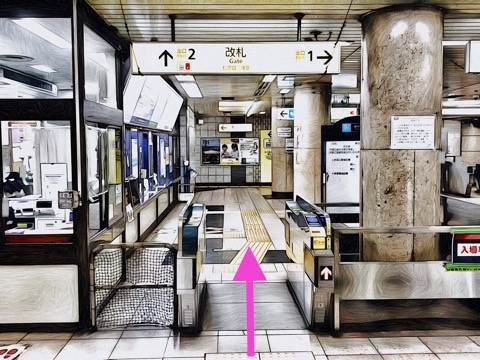 エスカレーターを降り左前方の改札へ