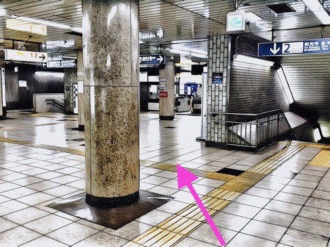 4号車4番扉(先頭から4両目)付近のエスカレーターで改札階へ