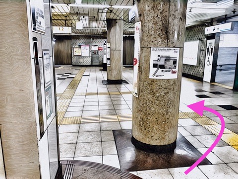 5号車3番扉(先頭から6両目)付近のエレベーターで改札階へ