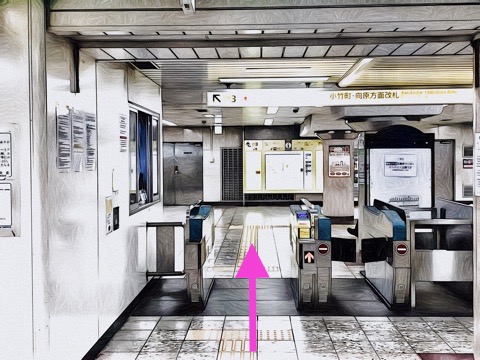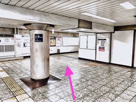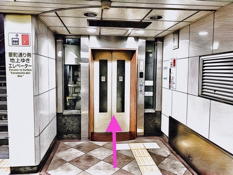 9号車3番扉(先頭から9両目)付近のエレベーターで改札階へ