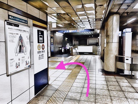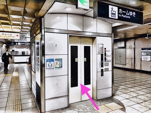 右の1番線が新木場方面行きホーム(4号車4番扉/先頭から7両目)