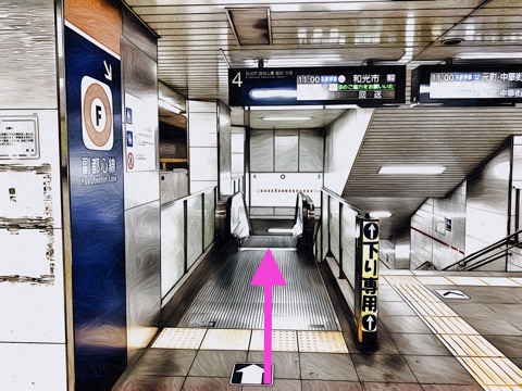 3号車3番扉(先頭から8両目)付近のエスカレーターで副都心線ホーム階へ