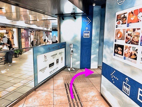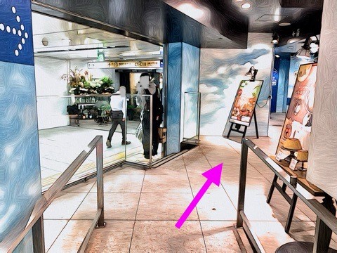 3号車3番扉(先頭から8両目)付近のエレベーターで上の階へ