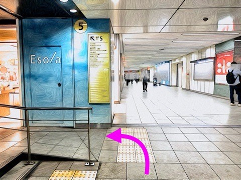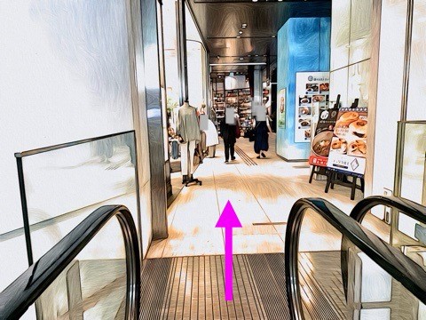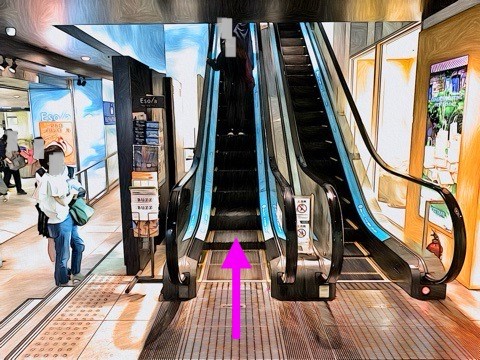 5号車1番扉(先頭から6両目)付近のエスカレーターへ