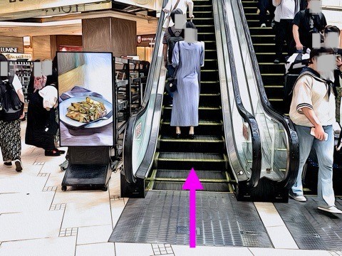 前方のエスカレーターへ