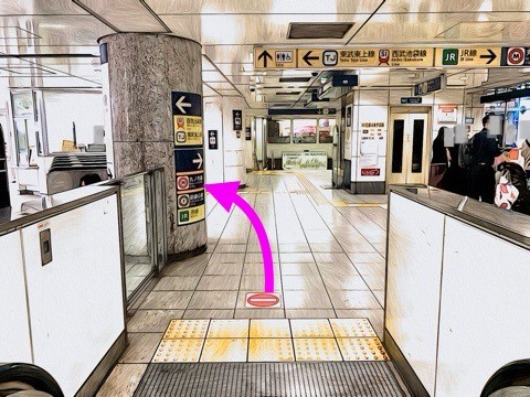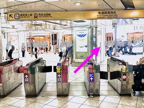 エスカレーターを降り左にある改札へ