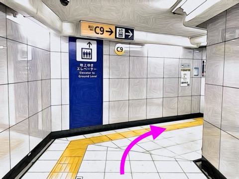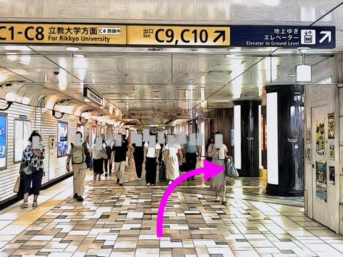 5号車1番扉(先頭から5両目)付近のエスカレーターへ