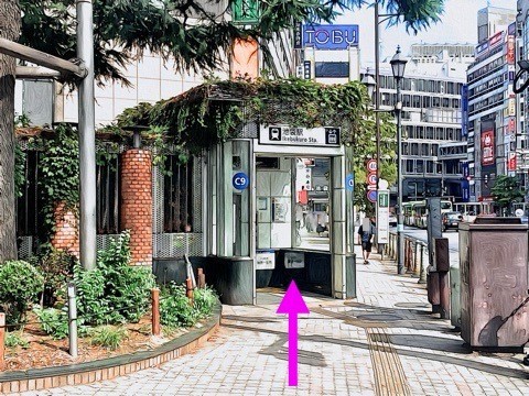 出入口C9のエレベーターへ