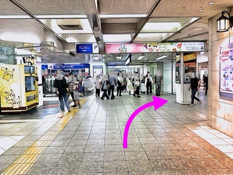 エスカレーターを降り右側の通路へ