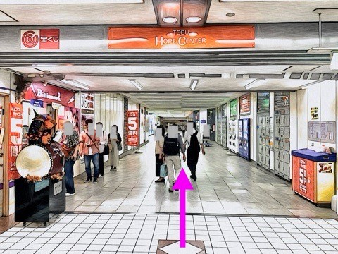 改札を入り左にあるエスカレーターへ