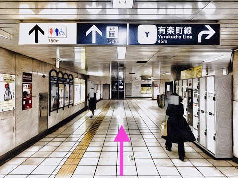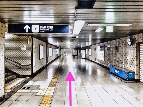 改札を入り前方へ