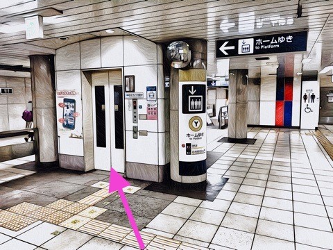 出入口1のエレベーターで改札階へ