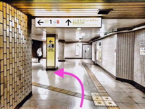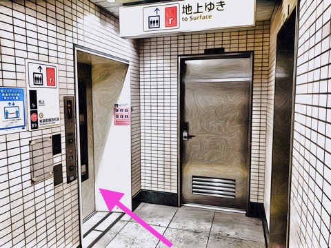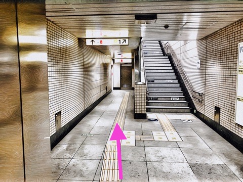 4号車3番扉(先頭から7両目)付近のエスカレーターへ