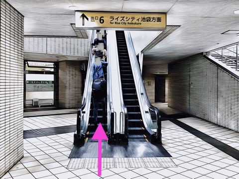 4号車3番扉(先頭から7両目)付近のエスカレーターへ