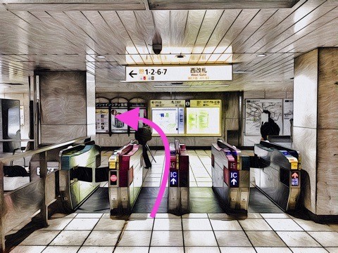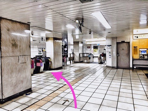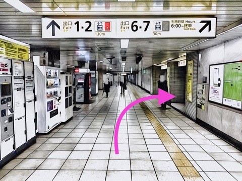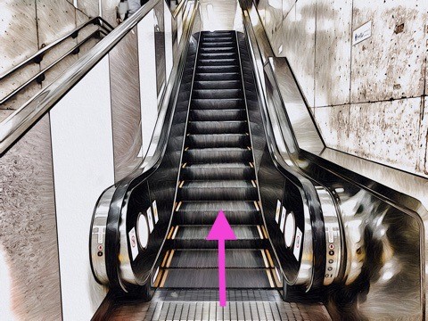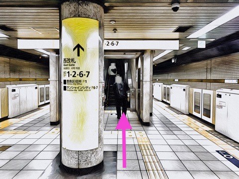 4号車3番扉(先頭から7両目)付近のエスカレーターへ