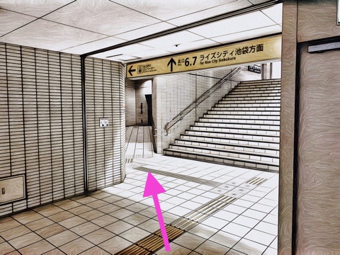 4号車3番扉(先頭から7両目)付近のエスカレーターへ